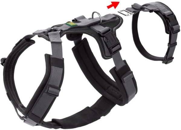 Sicherheitsgeschirr ist eine Wichtige Sache wenn man auch ins Alpine Gelände geht, mit diesem Geschirr kann man ihn nehmen, hochheben bzw wo rauf / runter helfen und vor allem es hat 3 Sicherheitsgurte und nicht zwei ! Kein rausschlüpfen möglich! Bessere Druck Verteilung . Dieses Modell haben wir weil es auch perfekt gepolstert ist und die schnallen nicht an den Ellenbogen scheuern wie leider bei den meisten !