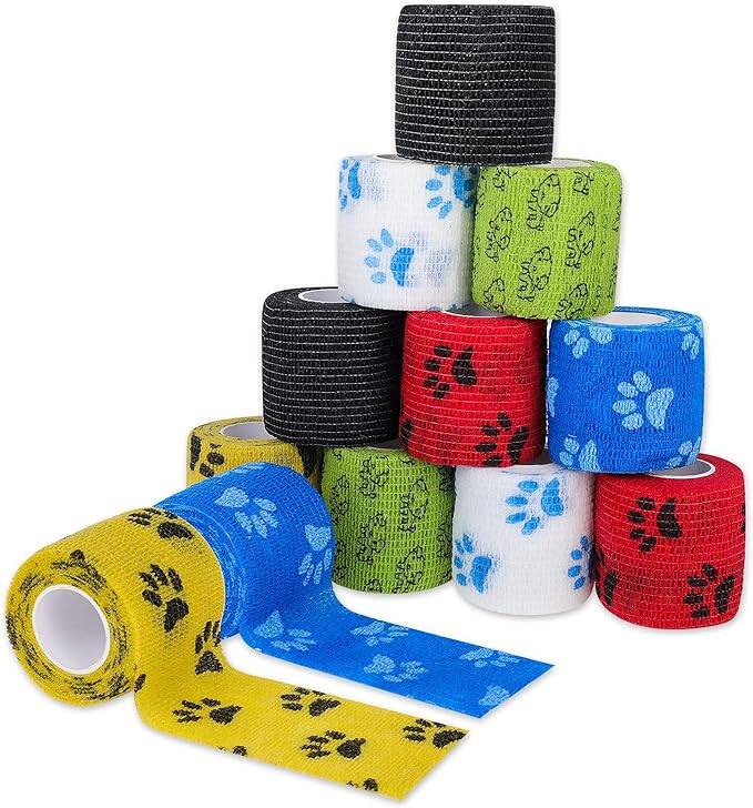 12Stück Selbstklebender Verband Kohäsive Bandage Selbsthaftend Elastische Binde Haftbandage für Katze, Hund,Handgelenk,Knöchel, 5cm*4,5m