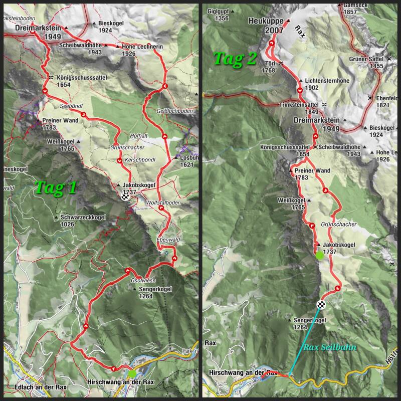 Zwei Tagestour auf der Rax. Dreimarkstein 1949m,Hohe Lechnerin 1926m, Scheibwaldhöhe 1943m, Preinerwand 1783m, Heukuppe 2007m und Jakobskogel 1737m.