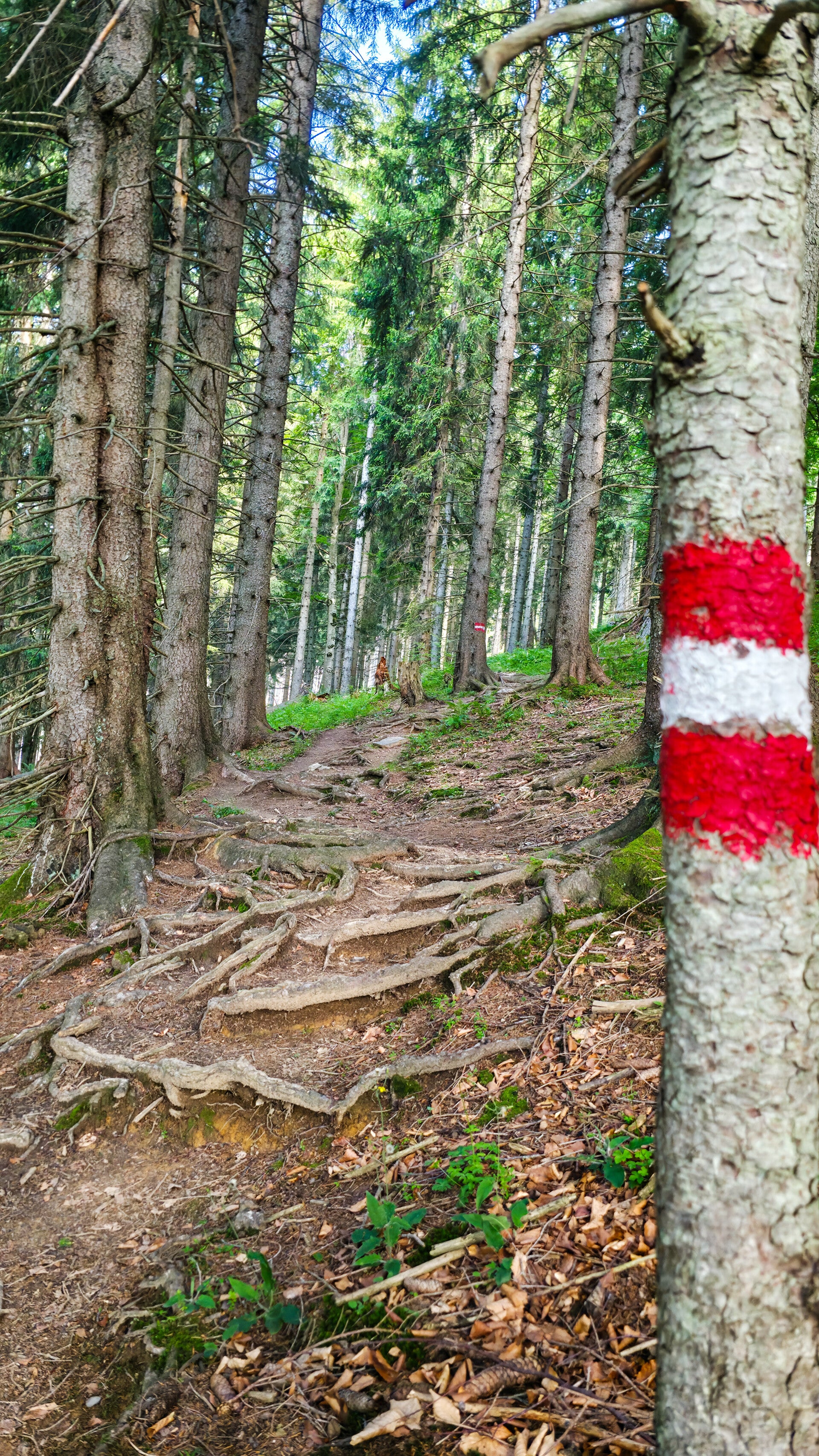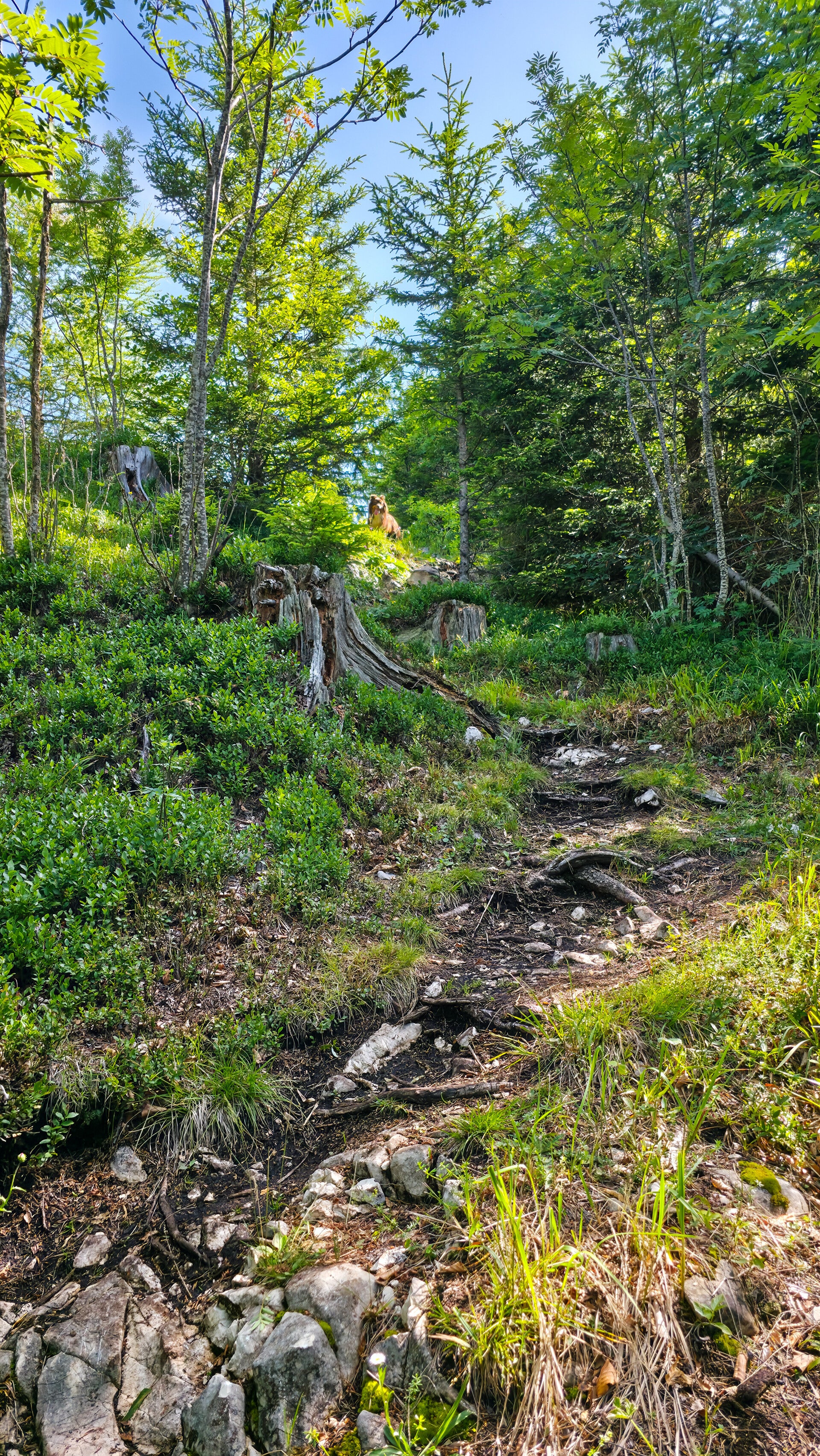 Gestartet sind wir am Jagahäusl im Bodinggraben, die erste Hälfte der Höhenmeter bin ich mit dem E-MTB hoch bis zur Schaumbergalm . Dort hab ich das Bikes abgestellt – und sind die restlichen Höhenmeter ganz klassisch hoch gewandert.