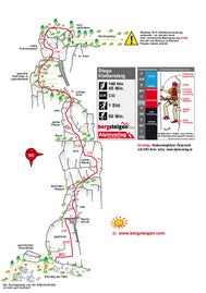 Sehr schöner Klettersteig in der Silberkarklamm. Der Siega-Klettersteig durch die das Silberkar abschließende Barwand wurde Ende Juli 2008 eröffnet. Es wurden 260 m Stahlseil und zahlreiche Trittstifte montiert. Der klassische Sport-Klettersteig verzichtet auf moderne Gestaltungselemente wie Seilbrücken und dergleichen.