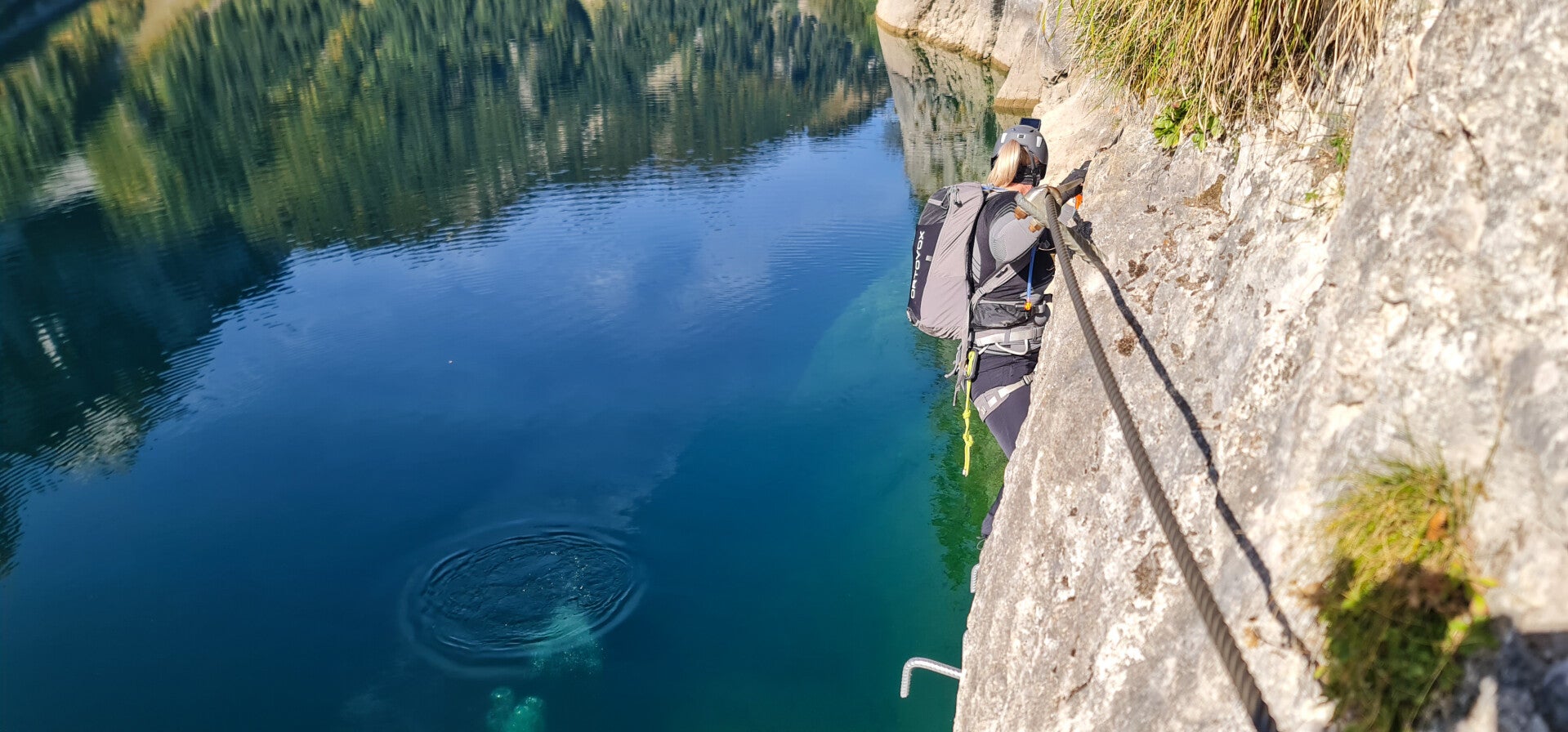 Ja wir haben einen Taucher gesehen beim Klettern, sowas passiert einem sicher nicht so schnell aber beim Laserer Alpin klettert man direkt oberhalb des Wassers.