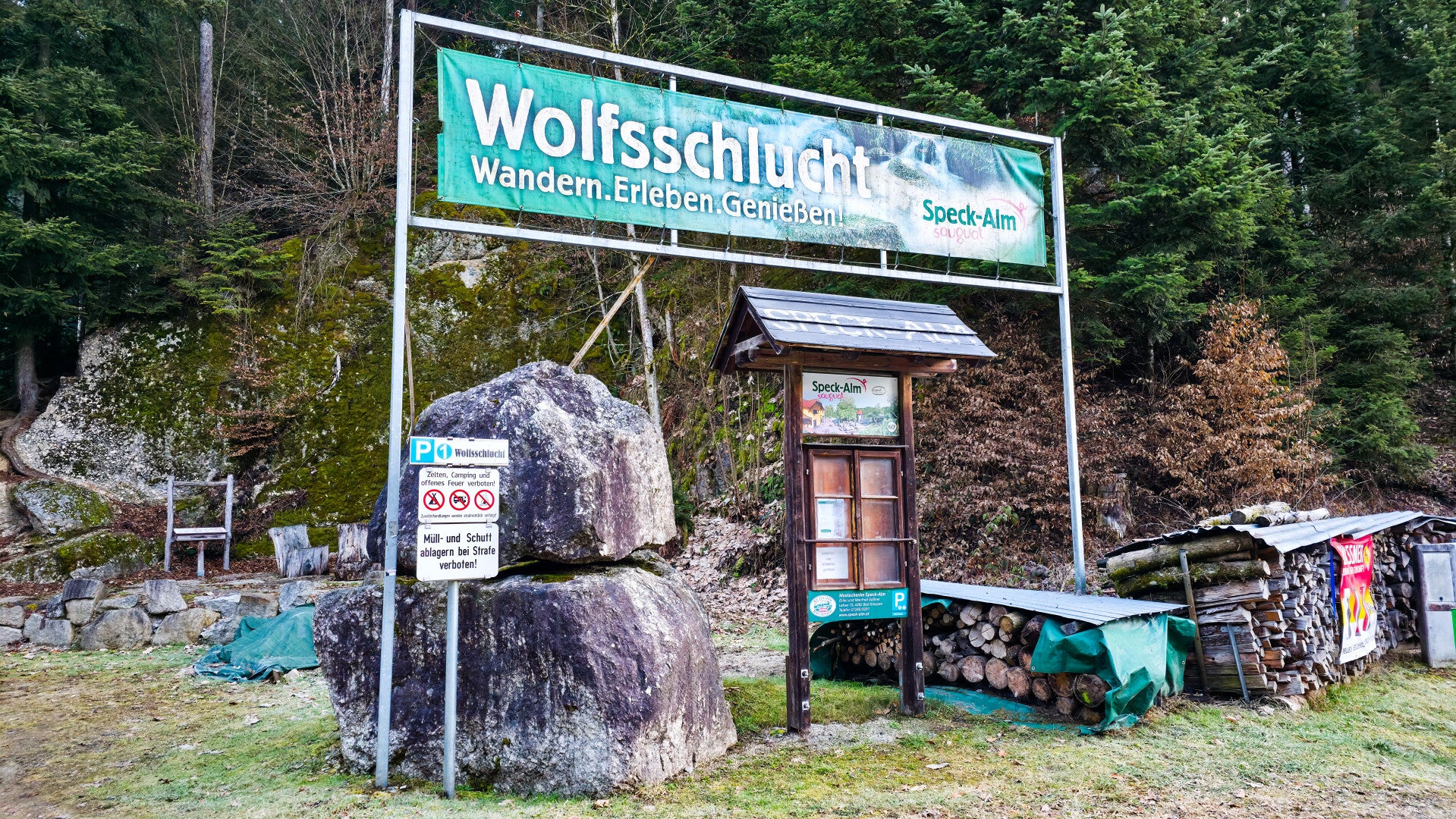 Gute Erklärung zu den Wegen am Parkplatz, Wolfsschlucht Eingang zu finden.